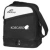 Sacoche à compartiment en polyester 600D avec grande poche supérieure pour y insérer des objets et compartiment inférieur dédié au rangement des boules. Petite poche avant.